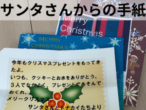 そして、隠ししてあったクリスマスプレゼントと供にサンタさんからの手紙をおきます。